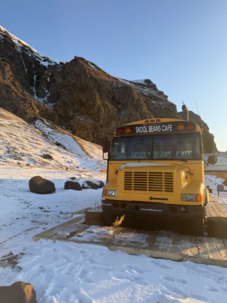 Where to eat in Vík Skool Beans The original Skool bus cafe & micro roaster… & sometimes a cat! Skool Beans is located along the southern coast of Iceland, in ...